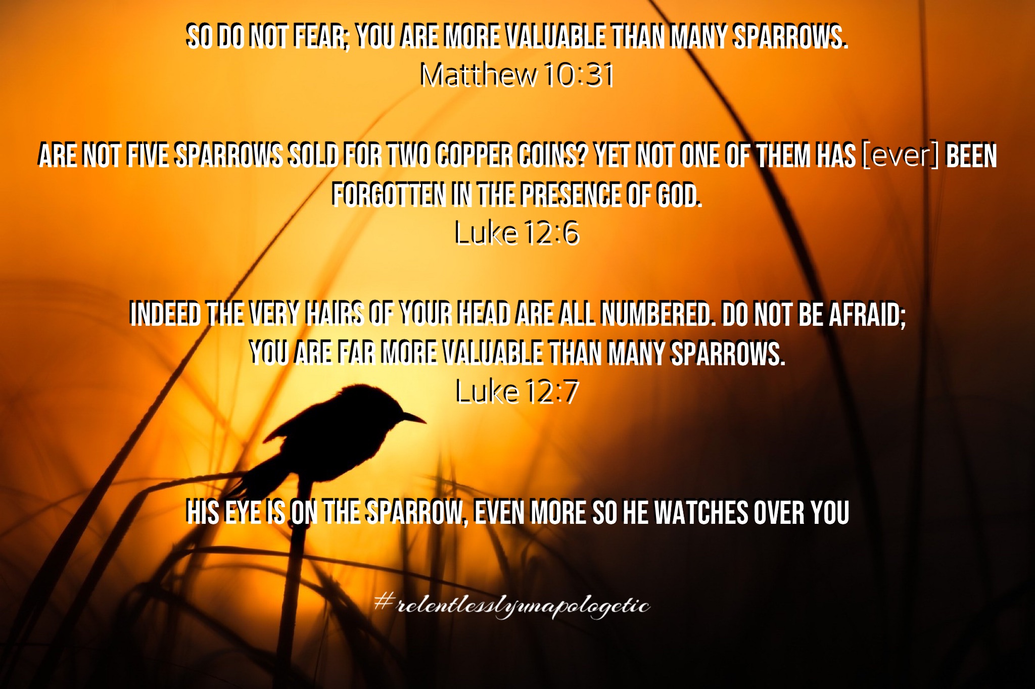 So each time, when you see the sparrow, remember, My eyes are watching over you to fulfill My Promises!
